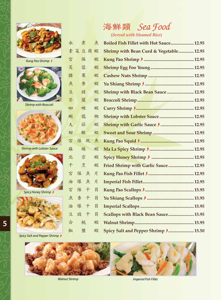 Combination of shrimp, beef, and chicken stir fried with fresh vegetables in kung pao sauce. Hot and spicy.