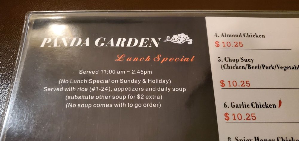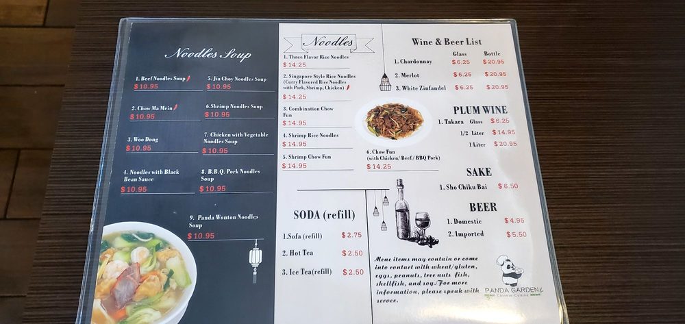 Panda Garden in San Marcos, CA, offers a wide range of Chinese dishes, from lunch specials like Almond Chicken and Kung Pao Chicken to flavorful Noodles Soup options like Panda Wonton Noodles Soup and Chow Ma Mein. The restaurant provides vegan and vegetarian options, catering services, and a family-friendly atmosphere. Customers praise the delicious food, generous portions, and friendly staff. Standout dishes include Orange Beef, Moo Shu Chicken, and the Yang Chow Fried Rice. The Walnut Shrimp and Lo Mein are highly recommended for their bold flavors. Overall, Panda Garden is a go-to spot for tasty Chinese cuisine in North County, offering a mix of traditional favorites and innovative dishes that leave customers eager to return.