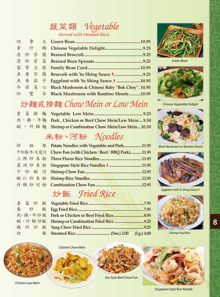 Chow Mein (no noodles) or Low Mein (similar to spaghetti noodles but thicker)